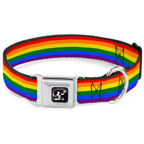 Spirit of Detroit Logo Full Color Black/White Seatbelt Buckle Collar – Flag Pride Rainbow -