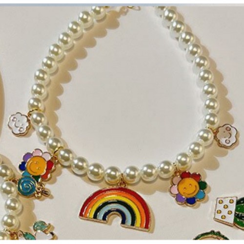 Rainbow Charms Faux Pearls Pet Necklace