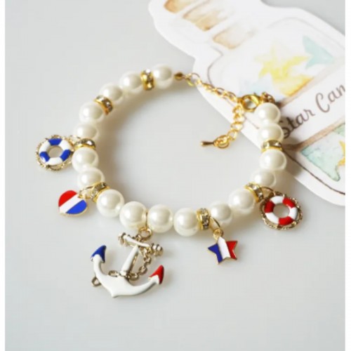 Nautical Charms Faux Pearls Pet Necklace