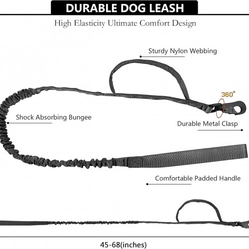 Tactical AirTag Dog Collar Leash Set – Heavy Duty, Adjustable GPS Collar Compatible with Apple AirTag, with Holder & Control Handle for Medium/Large Dogs [ Black, L ]