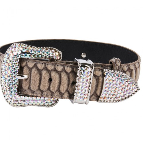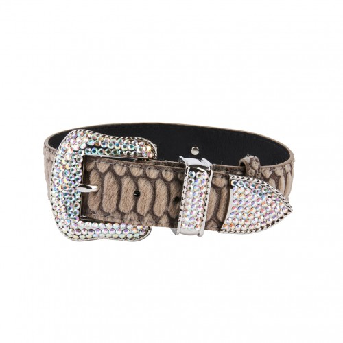 Grey/Bronze Snake Print Hair On Hide Italian Leather Collar With Swarovski Crystal Hardware