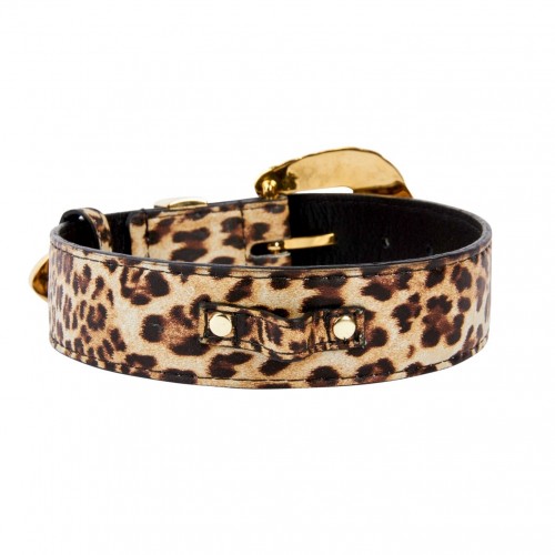 Leopard Print Italian Leather Collar With Swarovski Crystal Hardware