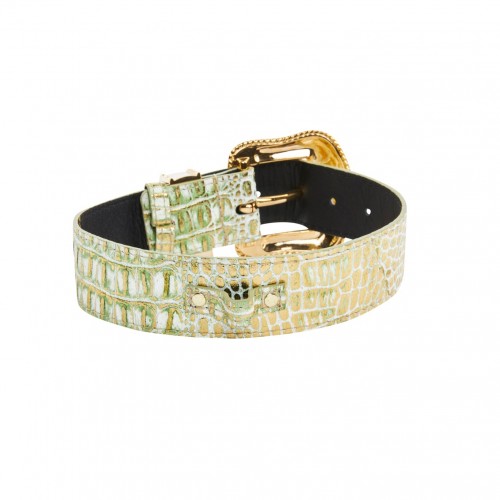 Luxury Pet Fashion Green/Gold Embossed Croc Italian Leather/Swarovski Crystal Collar