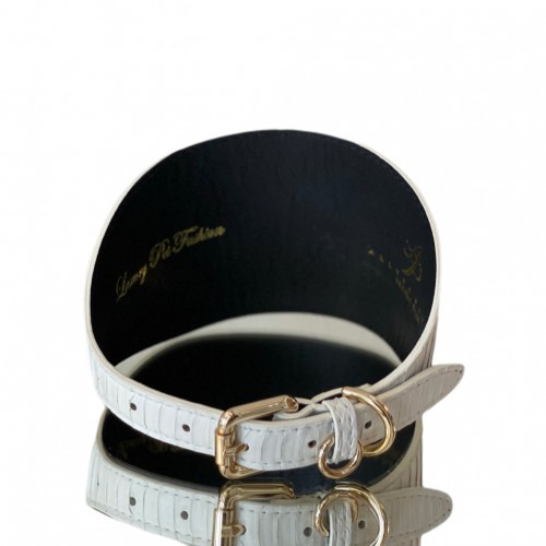 Luxury Pet Fashion Matte White Snakeskin Wide Collar & Leash Set