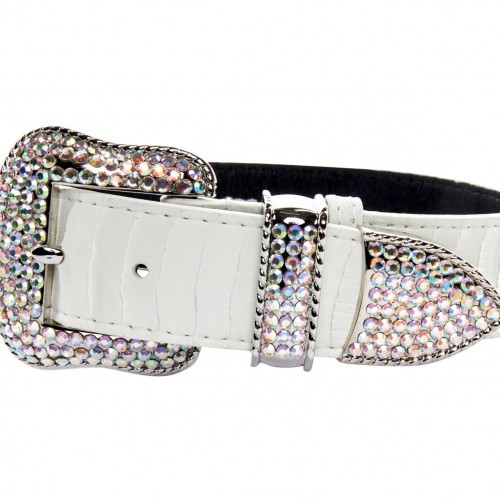 Matte White Snake 4 Wide Collar With Our 3 Custom Swarovski Crystal Rivets