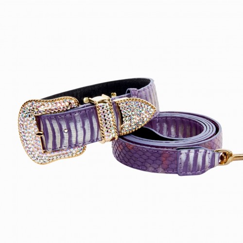 Luxury Pet Fashion Purple & Black Viper Snake Collar With Swarovski Crystal Hardware