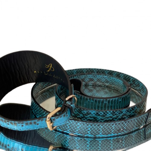 Luxury Pet Fashion Turquoise Black Snakeskin Collar & Leash Set