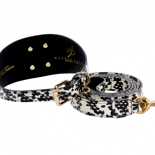 Black & White Snake 3 Wide Style Collar & Leash Set With Large Gold Custom Rivet