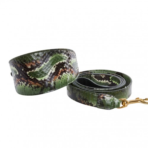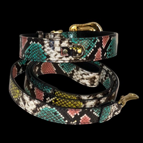 Multi-Color Embossed Snake Italian Leather, 3 Wide Style Collar & Leash Set
