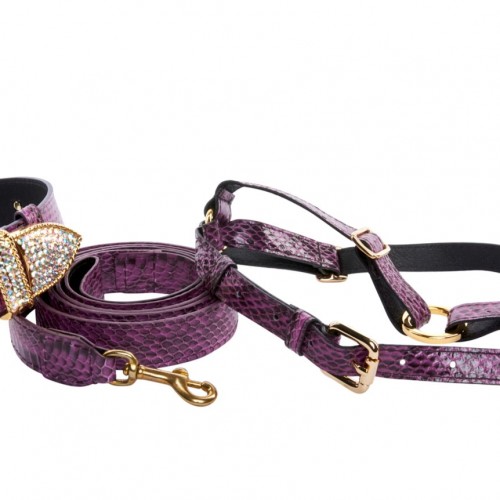 Purple & Black Viper Snake Swarovski Collar, Leash, Harness Set