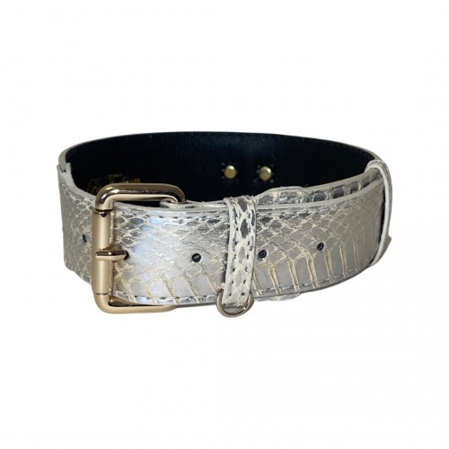 Stunning Silver Snake 4 Wide Style Collar With Silver Classic Hardware