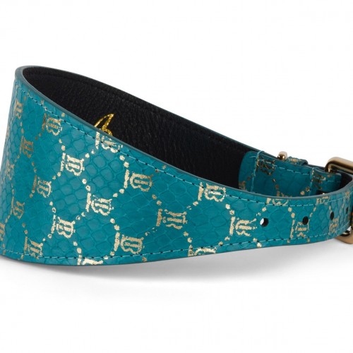 Stunning Multi-Color Blue/Silver/Gold Snake, Classic Collar With Gold Hardware