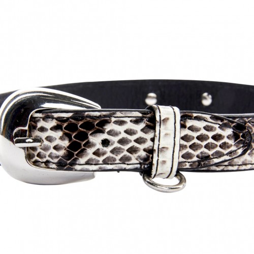 Black & White Viper Snake Collar With Silver Oval Italian Hardware