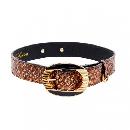 Bronze Gold Snake With Vintage Black & Gold Custom Italian Hardware Collar