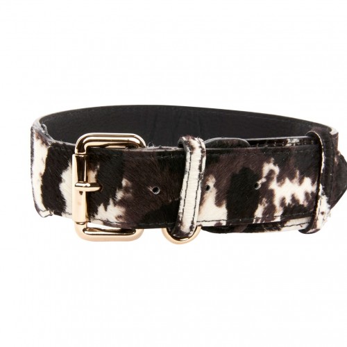 Brown, Black & White Hair On Hide Collar With Classic Gold Hardware
