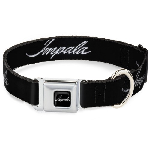 IMPALA Script Emblem Black/Silver Seatbelt Buckle Collar – IMPALA Script Emblem Black/Silver