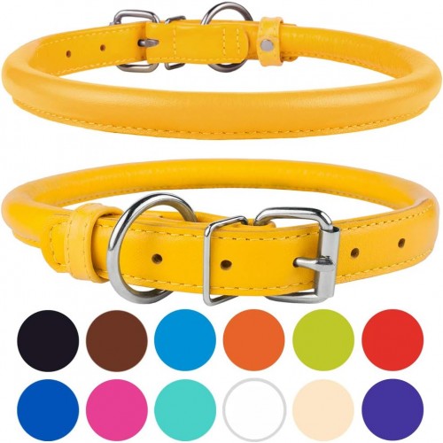 CollarDirect Rolled Leather Dog Collar, Soft Padded Round Puppy Collar, Handmade Genuine Leather Collar Dog Small Large Cat Collars 13 Colors (13-16 Inch, Orange Textured)