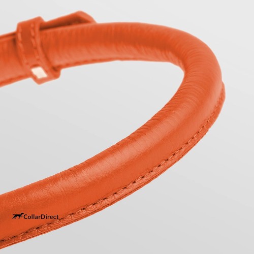 CollarDirect Rolled Leather Dog Collar, Soft Padded Round Puppy Collar, Handmade Genuine Leather Collar Dog Small Large Cat Collars 13 Colors (6 Inch, Orange Textured)