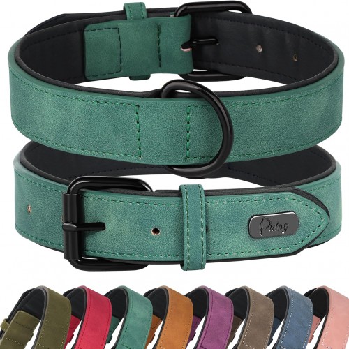 Didog Soft Padded Leather Dog Collar, Breathable Heavy Duty Dog Collar Leather with Adjustable Rust-Proof Metal Buckle for Small Medium Large Dogs, Green, M: Total length 16”, Fit 11-13”Neck