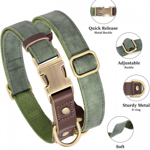 Didog Soft PU Leather Dog Collar, Stylish Quick Released Dog Collar for Large Dogs, Easy Clean Adjustable Pet Collar for Daily Walking, Dark Green, L Fit 15-23″ Neck