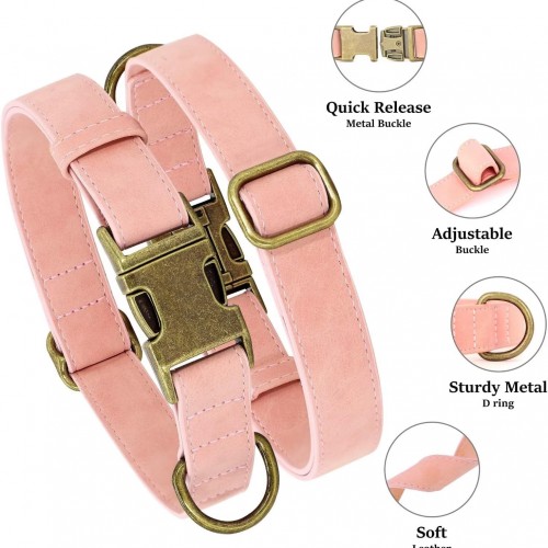 Didog Soft PU Leather Dog Collar, Stylish Quick Released Dog Collar for Large Dogs, Easy Clean Adjustable Pet Collar for Daily Walking, Pink, L Fit 15-23″ Neck