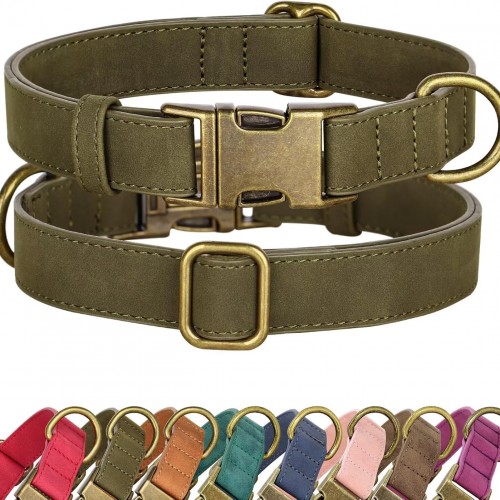 Didog Soft PU Leather Dog Collar for Large Dogs,Classic Adjustable Dog Collars with Quick Release Metal Buckle,Easy Clean and Comfortable with Nylon Lining,Olive Green,L Neck 15-23″