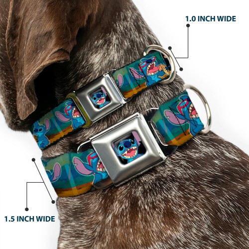 Stitch Smiling CLOSE-UP Full Color Black Seatbelt Buckle Collar – Lilo & Stitch 5-Scene Blocks