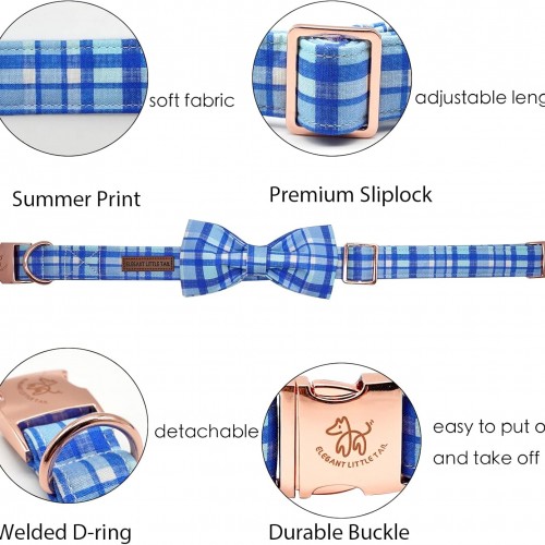 Elegant little tail Dog Collar with Bow – Blue Plaid Boy Dog Collar Cute Bowtie Pet Collar Adjustable Dog Collar for X-Small Puppy and Cat