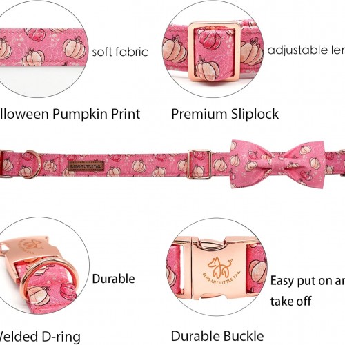 Elegant Little Tail Dog Collar with Bow, Adjustable Halloween Pumpkin Bowtie Collar for Small to Large Dogs