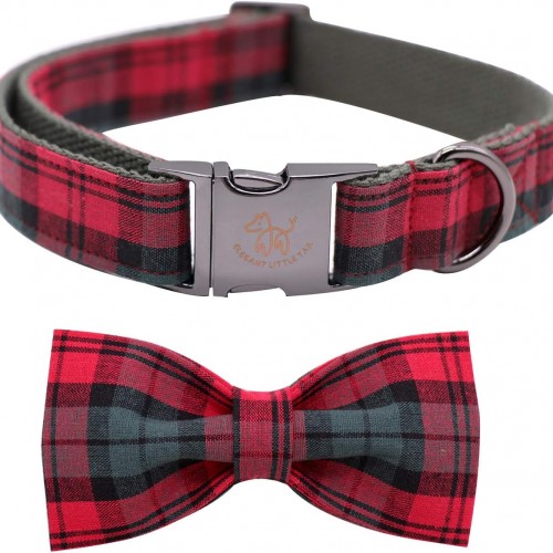 Elegant little tail Dog Collar with Bow, Cotton & Webbing, Bowtie Dog Collar, Adjustable Dog Collars for Small Medium Large Dogs and Cats