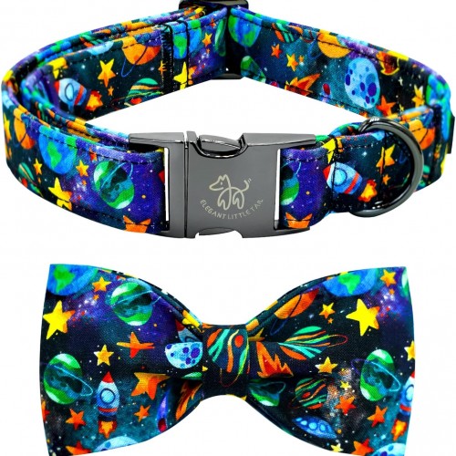 Elegant little tail Dog Collar, Boy Pet Collrs Blue Durable Soft Bowtie Dog Collar Adjustable Dog Collars for Small Medium Large Dogs