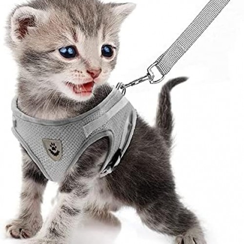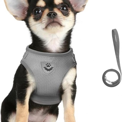 FEimaX Dog Harness and Leash Set for Walking, Soft Mesh Adjustable Easy Control Lightweight Cat Vest Harnesses with Reflective Strips, Escape Proof Small Dogs Cats Vests (Grey, Medium)