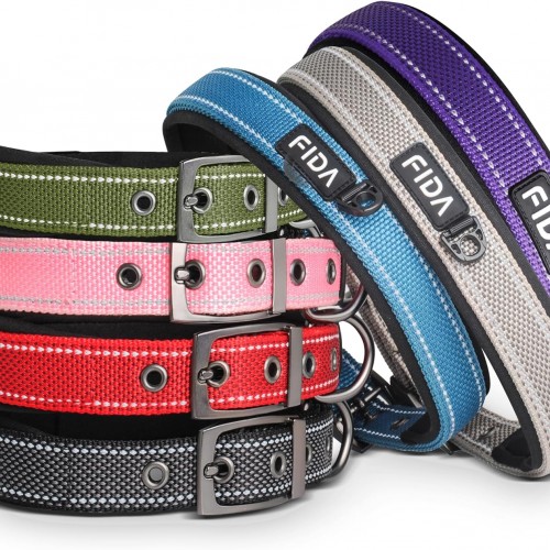 Fida Heavy Duty Dog Collar, Ultra Comfortable Soft Neoprene Padded, Adjustable Reflective Nylon Pet Collar with Durable Metal Belt Buckle for Large Breeds (L, Purple)