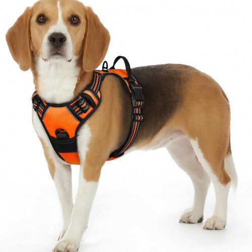 Eagloo Dog Harness Small Sized Dog, No Pull Service Vest with Reflective Strips and Control Handle, Adjustable and Comfortable for Easy Walking, No Choke Pet Harness with 2 Metal Rings, Orange, S