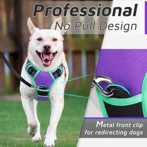 Eagloo Dog Harness Small Sized Dog, No Pull Service Vest with Reflective Strips and Control Handle, Adjustable and Comfortable for Walking, No Choke Pet Harness with 2 Metal Rings, Purple & Green, S