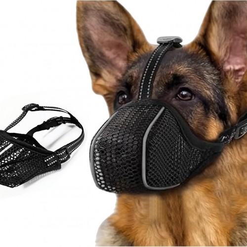Dog Muzzle, Mesh Soft Muzzle for Small Medium Large Sized Dogs, Breathable Adjustable Puppy Muzzles for Scavenging Biting Licking and Chewing, Allows Panting and Drinking (Reflective Mesh, XL)