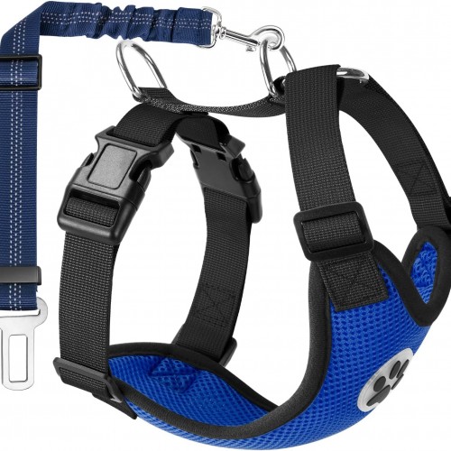 Lukovee Dog Seat Belt – Adjustable Dog Car Harness for Large, Medium & Small Dogs, Soft Padded & Breathable Mesh Dog Seatbelt with Car Vehicle Connector Strap (Blue, Medium)