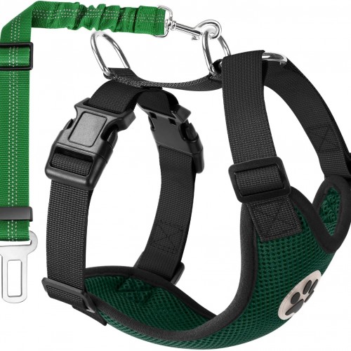 Lukovee Dog Seat Belt – Adjustable Dog Car Harness for Large, Medium & Small Dogs, Soft Padded & Breathable Mesh Dog Seatbelt with Vehicle Connector Strap (Green, Medium)