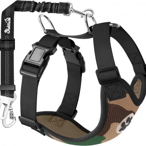 Lukovee Dog Seat Belt for Car, Adjustable Dog Car Harness for Large Medium Small Dogs, Soft Padded & Breathable Mesh Dog Seatbelt with Car Strap and Carabiner(Camouflage Double Clip,Medium)