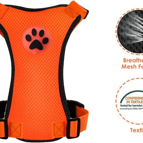 Lukovee Dog Seat Belt – Adjustable Dog Car Harness for Large, Medium, Small Dogs – Soft Padded & Breathable Mesh Dog Seatbelt with Vehicle Connector Strap (Orange, Small)