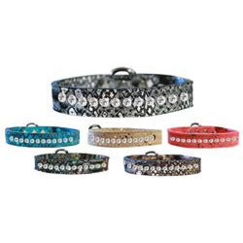 One Row Clear Jeweled Dragon Skin Genuine Leather Dog Collar