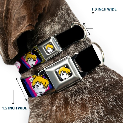 Tinker Bell CLOSE-UP Full Color Black White Seatbelt Buckle Collar – Tinker Bell Scenes Black/White