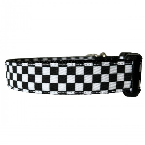 White Floral Mosaic Italian Leather Collar & Leash Set With Gold Classic Hardware