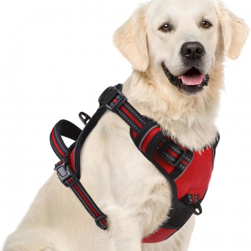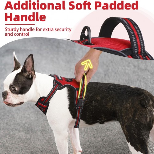 PUPTECK No Pull Dog Harness for Large, Adjustable Reflective Dog Harness with Handle Easy Control, Comfortable Soft Padded Pet Vest Harness for Extra Large Dogs, Red XL