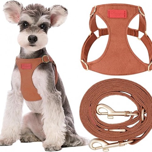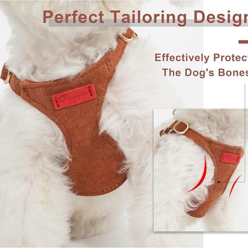 Puppytie No Pull Small Dog Harness with Multifunction Dog Leash,Lightweight Soft Adjustable No Choke Escape Proof Pet Harness Vest Pet Harness Vest,Brown Caramel,S