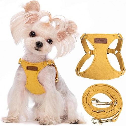 Puppytie No Pull XXS Puppy Harness with Multifunction Dog Leash,Soft Adjustable No Choke Escape Proof Pet Harness Vest,Yellow,XXS