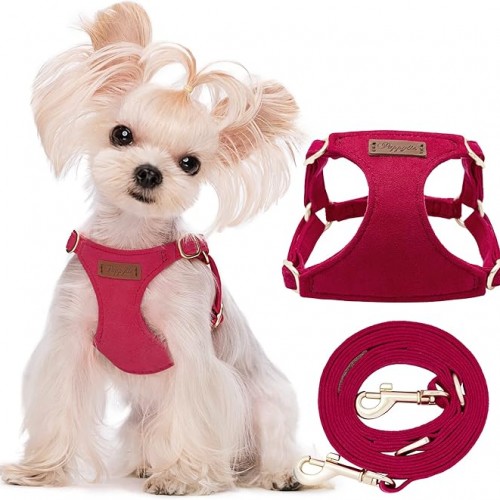 Puppytie No Pull XXS Puppy Harness with Multifunction Dog Leash,Soft Adjustable No Choke Escape Proof Pet Harness Vest,red-Camellia,XXS
