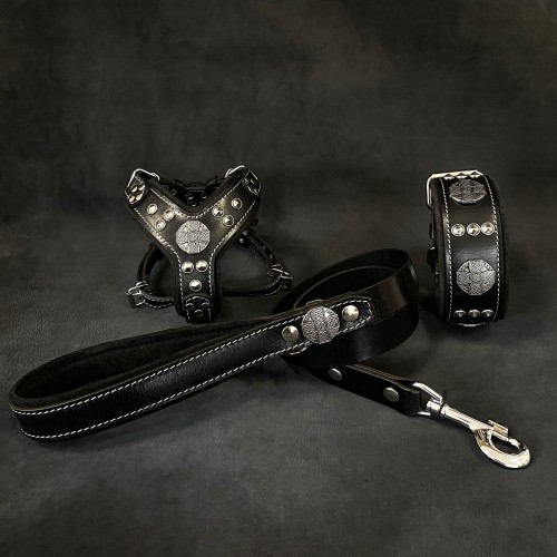 “Maximus Black&Silver” Small dog SET – Harness – collar – lead