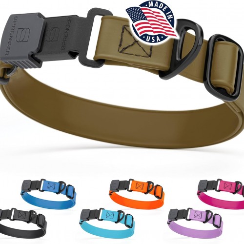 Dogline Biothane Waterproof Dog Collar with Herm Sprenger Stainless Steel Quick Release Buckle – Heavy Duty Tactical Durable Collar for Dogs – Comfortable and Safe Pet Collar, W 1″ L 15-25″, Brown