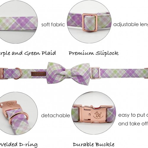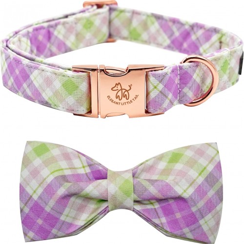 Elegant Little Tail Plaid Dog Collar with Cute Bowtie for Small to Large Dogs